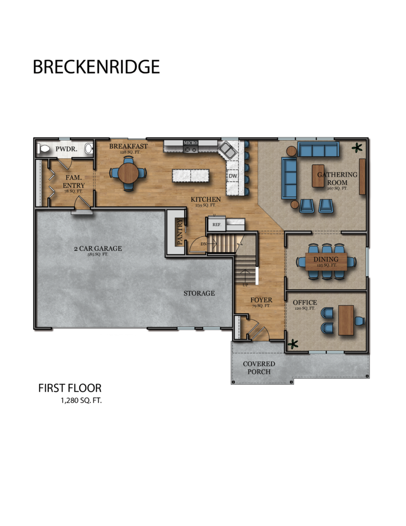 Value engineered to stretch both living space and your home buying dollar, the Breckenridge is another spacious design from Bosgraaf. A welcoming foyer greets you as you enter. To the right is a flexible, cozy den, library, music room or study. Then, a large formal dining room for entertaining. Further into the home, it explodes into a fantastic great room and huge kitchen for gathering the family. A large family entrance and laundry area round out the fabulous, main level of the Breckenridge. Upstairs are 4 bedrooms and a large owner’s suite with huge walk-in closet and dressing area. A second floor family room opens up all kinds of possibilities: game room, home theatre, the list is as long as your imagination.