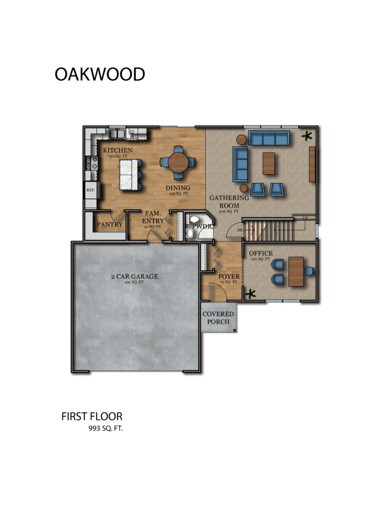 As you pass through the Oakwood’s entrance, you’re greeted immediately by a cozy main floor den, then the spacious gathering area—a versatile space that’s as comfortable supporting an afternoon nap, as it is entertaining several guests. If you enter through the garage, your family gets a generous “landing zone” for shoes, boots, backpacks, and the like. A fully equipped kitchen, dining area, half bath and deck complete the main floor. Upstairs you’ll find 4 bedrooms, including an owner’s suite with a walk-in closet. Now, back down two stair flights, to the lower level where a potential 5th bedroom, full bath, and rec room are just waiting to be built in, should you decide to go ahead with those options. All this, and priced at less than you’d expect to pay for such an all-around fantastic family home!